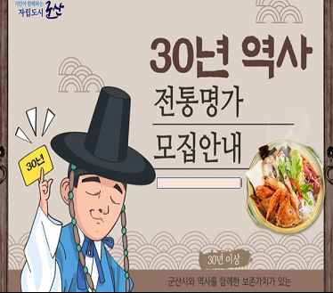 군산시는 30년 이상 지속적으로 동일 업종을 영위한 소상공인과 가업승계자를 대상으로 전통명가와 명예전통명가를 선정하고 있다.