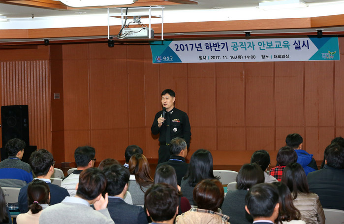 [세계로컬신문 오영균 기자]대전 유성구가 지난 16일 대회의실에서 국가안보의식 고취를 위해 공직자 100여명을 대상으로 ‘2017년 하반기 안보교육’을 실시하고 있다.
