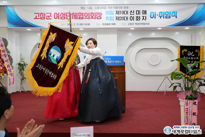 이화자 취임회장은 “여성단체의 초석을 닦아준 역대 회장님들에게 감사드린다”며 “고창군 여성단체회원들과 함께 적극적으로 여성의 사회참여 확대와 권익보호에 고창군 여성단체협의회가 주축이 되겠다”고 말했다.