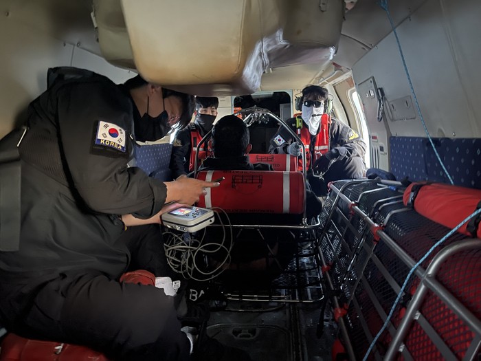 서해해경청은 응급환자가 발생했다는 남해지방해양경찰청 소속 통영해양경찰서의 신고를 받고 즉시 여수항공대 항공기를 급파했다.