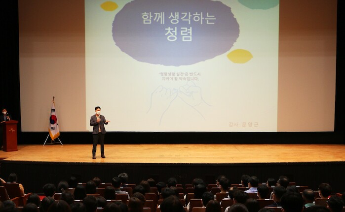 이날 청렴 교육은 국민권익위원회 청렴교육전문강사로 활동 중인 문양근 엠코드컨설팅 대표를 초청, ‘업무 수행 중 공직자의 행위기준 정립과 친절마인드 함양’을 주제로 오전과 오후 2차례로 나뉘어 진행됐다.