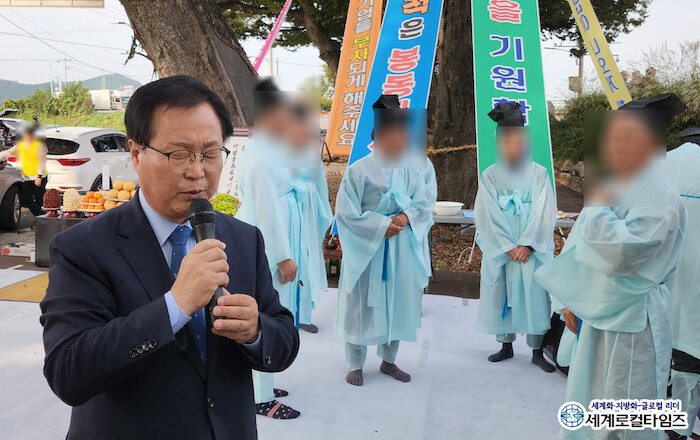 [세계로컬타임즈 글·사진 조주연 기자] 유희태 전북 완주군수가 10일 ‘봉동읍민의 날’을 맞이해 행해진 당산제에서 개회 기도를 자청했다.