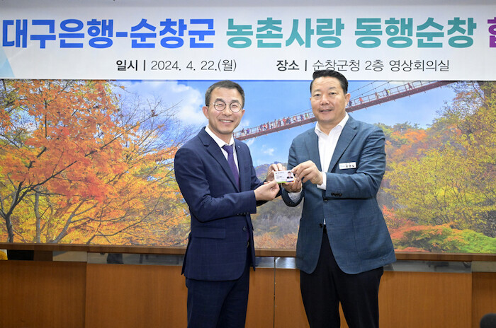이해원 대구은행 부행장은 “대구은행과 치유와 힐링의 명소인 순창군이 상호 우호 증진 및 사회적 가치실현을 위한 협력을 통해 지속적인 교류가 이루어져 도농교류 활성화에 기여할 수 있도록 노력하겠다”고 밝혔다.