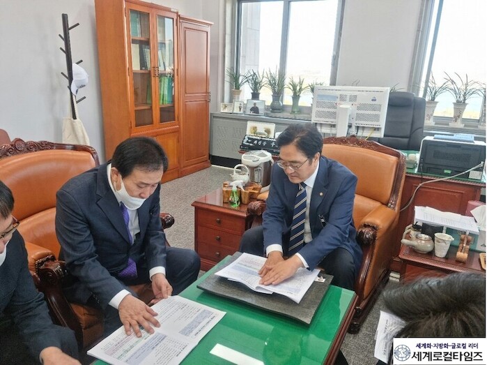 | ▲ 박홍률 목포시장이 우원식 국회 예결위원장과 면담하고 있다.(사진=목포시) |