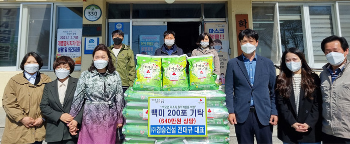 광주소재 ㈜경승건설 전대규 대표가 코로나19 장기화로 어려움을 겪고 있는 저소득 취약 계층에 전달해 달라며 백미(10kg) 200포(640만원 상당)를 지정 기탁한 것이다.