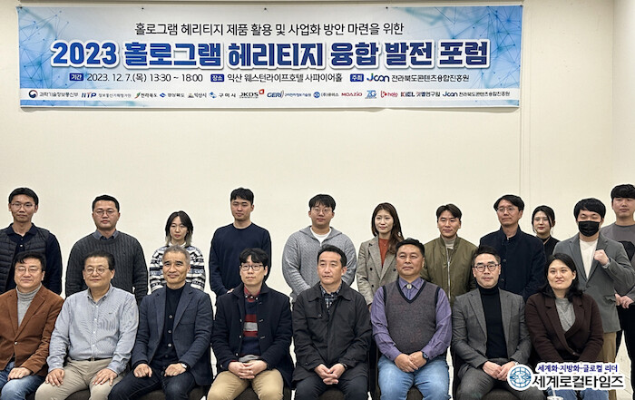 7일 전북 익산시에 따르면 ‘홀로그램 헤리티지 융합 발전 포럼’이 이날 웨스턴라이프 호텔에서 개최됐다. 전북도와 익산시가 지난해 과학기술정보통신부 국가공모 과제에 선정된 ‘홀로그램 기반 문화재 복원 및 가시화 서비스 실증사업’의 일환이다.