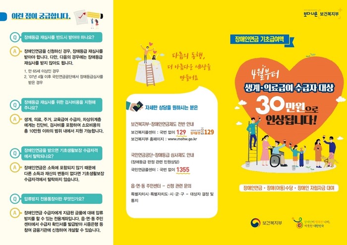 | ▲ 장애인 연금 기초급여액 증액 안내문.(사진=구미시 제공) |