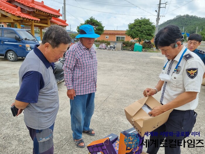 또한, 오토바이 운행으로 인한 교통사고 예방을 위해 안전모를 배부하고 최근 보이스피싱 피해사례를 통한 범죄피해 예방법에 대해 안내했다.