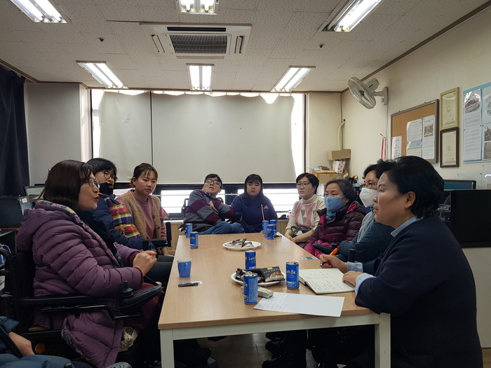 | ▲ 문정복 예비후보가 두리장애인자립생활센터 방문해 간담회를 열고 있다. (사진=문정복 예비후보) |