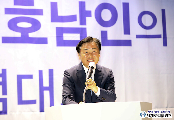 [세계로컬타임즈 조주연 기자] 4일 오후, 전북 전주 라한호텔에서 열린 ‘2022 세계 호남인의 날 기념식’에서 김관영 전북도지사가 축사를 전하고 있다. 전북도에 따르면 세계 호남향우회는 26개국 69개 지회 200여만 명의 호남 출신 재외동포로 구성돼 있으며 2013년 창설 이후 10월 4일을 호남인의 날로 정하고 매년 세계호남인의 날 기념행사를 개최해 왔다.