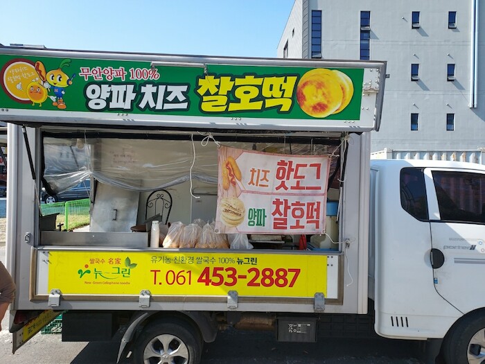 그런데 2~3년 전부터 영산강 강변도로 개통과 동시에 주말이면 푸드트럭에 양파호떡과 양파치즈 핫도그를 싣고 무안 양파 홍보대사 역할을 자처하는 노부부가 있어 화제다.