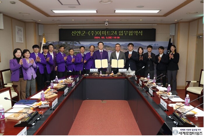 [세계로컬타임즈 김명진 기자] 신안군은 5일 군청 영상회의실에서 ㈜이마트24와 신안세계김밥페스타 협업을 위한 업무협약(MOU)을 체결했다.