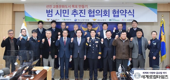 [세계로컬타임즈 김명진 기자] 목포경찰서는 1일 오전 목포경찰서장, 목포시장, 목포교육장, 목포소방서장, 도로교통공단 광주전남 지역본부장 및 비영리 민간단체 대표 등 총 19개 기관단체가 모여 '선진교통문화 도시 목포 만들기 범시민 추진 협의회' 업무 협약식을 개최했다.