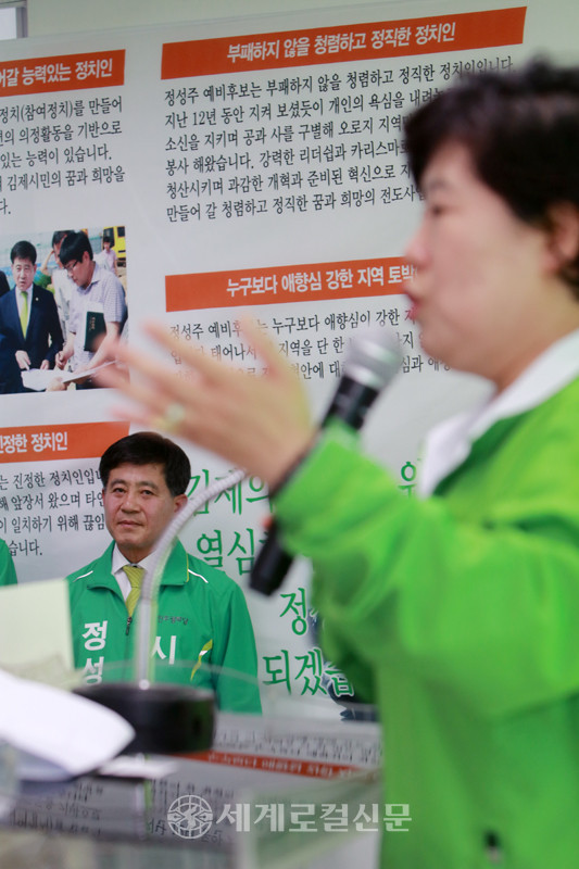 또 "시민을 주인으로 섬기는 머슴시장이 되겠다"며 "의혹과 거짓없는 투명한 시정을 펼치고 사람을 우선으로 생각하는 정성주가 되겠다"고 지지를 호소했다.