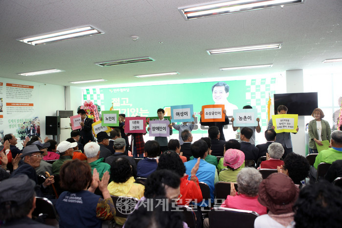 몰려 든 인파에 유성엽 의원도 놀라며 "민평당이 요즘 (지지율이) 안 좋다는데 김제만 같으면 해볼만 하겠다는 생각이 든다"고 말했다.