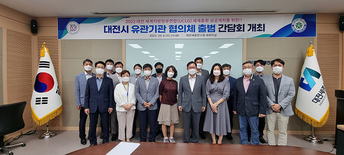 [세계로컬타임즈 민순혜 기자] 2022대전세계지방정부연합(UCLG)총회 조직위원회(위원장 허태정)는 2022년 대전총회의 성공 개최를 위해 6일 대전시 14개 유관기관 실(단)장 들이 한자리에 모여 유관기관 협의체 출범하고 간담회를 개최했다.