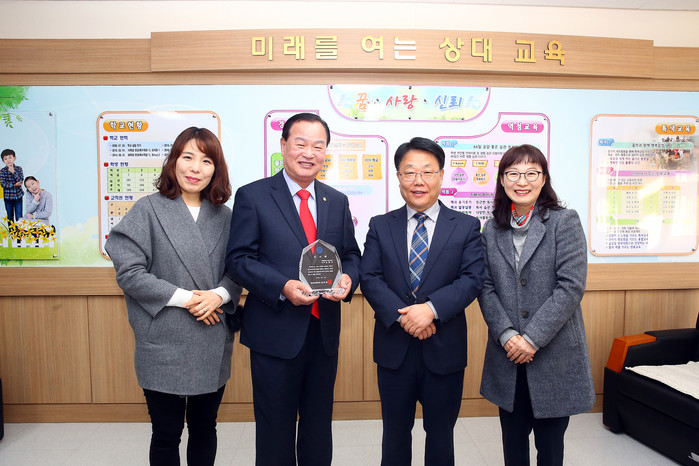 김주대 교장은 “송봉식 의원은 지난 4년 동안 눈이오나 비가오나 하루도 빠지지 않고 학생들의 안전한 등교를 위해 봉사해 왔다”며 “지역구 의원으로 바쁜 의정활동 중에도 학교발전과 아이들을 위한 교육환경 개선을 위해 노력해 온 공로를 인정해 감사패를 드린다”고 전했다.