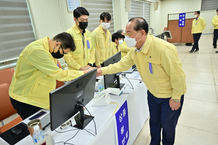 종합상황실 근무자 위로하며 위문품 전달 사기 격려