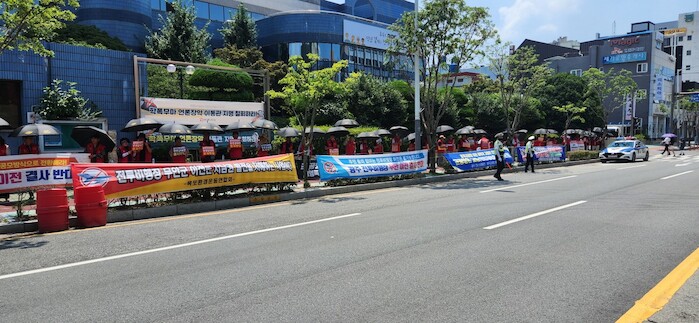 | ▲ 무안군민 150여명이 목포mbc앞에서 시위하고 있다.(사진=범대위) |