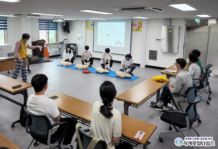 [세계로컬타임즈 조주연 기자] 전북 익산자원봉사센터가 매월 1회 시민과 자원봉사자들을 대상으로 응급처치교육을 실시하고 있다.