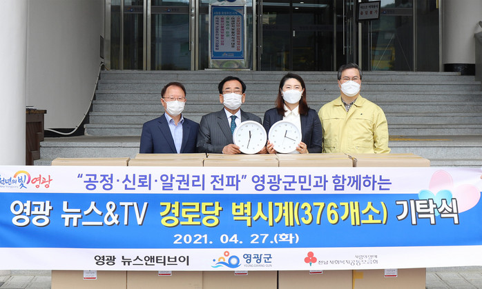 [세계로컬타임즈 이남규 기자] 영광뉴스&TV는 지난 27일 영광군 관내 전체 경로당에 전달해달라며 벽시계 376개를 영광군에 기탁했다.