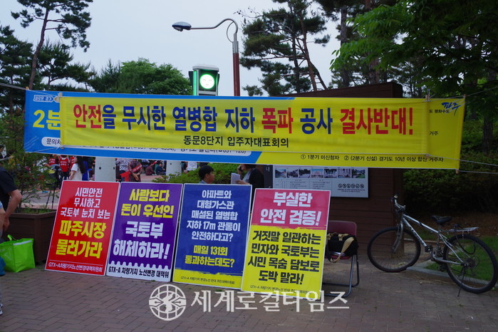 [세계로컬타임즈 추현욱 기자] 파주시 교하 GTX-A 차량기지 노선변경 주민대책위원회(주민대책위)는 'GTX-A 차량기지 노선 열병합발전소 지하관통 결사반대' 촛불집회를 열고 GTX-A 차량기지 노선변경을 강력 촉구했다.