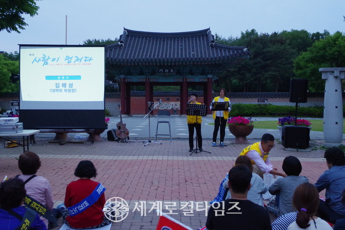 8일 저녁 파주시 교하 중앙공원에서 열린 이날 집회에는 김해성 주민대책위 위원장를 비롯해 노현기 파주환경운동연합 의장, 강동민 교하회장단 부회장 등 대책위 관계자와 파주시민 등 주최측 추산 약 600여명(연명부 기준)이 참석했다.