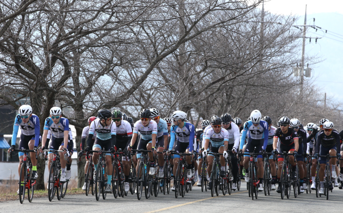 사진은 개막 첫날 개인도로 경기에 참가한 남자일반·남자고등부 선수들이 만물이 겨울잠에서 깨어난다는 경칩(驚蟄)의 따스한 봄볕을 받아가며 전력질주하고 있는 모습.
