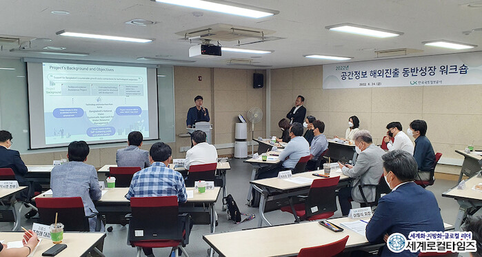 [세계로컬타임즈 조주연 기자] 한국국토정보공사가 “지난 24일 서울 논현동 공간정보아카데미에서 ‘2022년 공간정보 해외사업 동반성장 워크숍’을 개최한 가운데 17개 공간정보 분야 민간기업 종사자들이 SOC 공간정보 패키지 사업에 많은 관심을 보였다”고 27일 밝혔다.