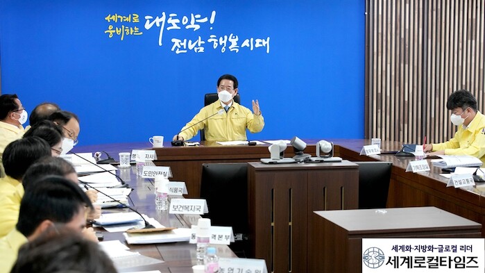 [세계로컬타임즈 김명진 기자] 김영록 전라남도지사는 25일 도청 재난상황실에서 실국장들이 참석한 가운데 대설 대처상황 점검회의를 열고 출근길 제설.제빙작업 철저, 취약계층 한파 피해 일제점검 등 도민 안전을 위한 발빠른 대응을 지시했다.