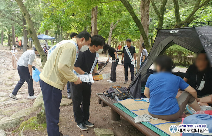 [세계로컬타임즈 조주연 기자] 전북 김제시가 피서지 쓰레기 관리를 위해 모악산 캠핑장과 물놀이장을 방문해 관광객들을 대상으로 무단투기 근절 캠페인을 벌였다.