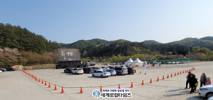 | ▲지난해 김제 모악산 축제 프로그램 중 자동차 극장, 찾는 이들이 없어 고작 16대의 차량으로 썰렁한 상태로 영화를 상영하고 있다. (세계로컬타임즈 DB) |