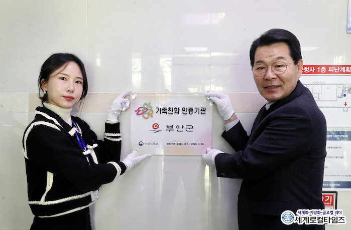 [세계로컬타임즈 조주연 기자] 전북 부안군이 “여성가족부가 선정하는 ‘가족친화 인증기관’ 재인증 심사를 통과해 오는 2025년 11월까지 3년간 가족친화 모범 우수기관 자격을 유지할 수 있게 됐다”고 14일 밝혔다.