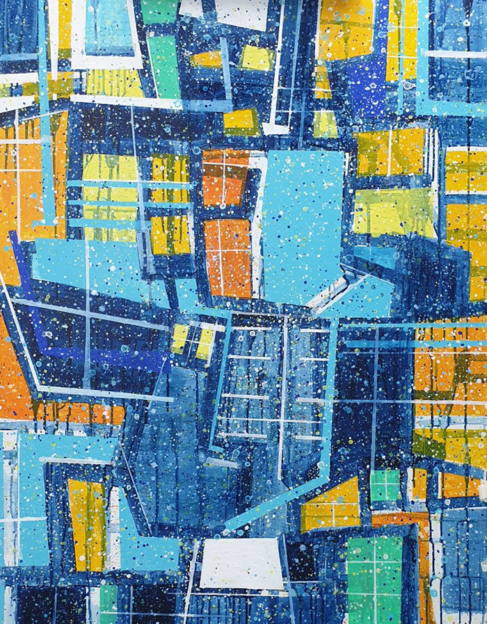 작가에게 또 다른 소재의 발견은 작업에 활기를 더 해 준다. 직관이나 상상으로 표현하는 비구상 그림은 밑그림 없이 시작한다. 머릿속 생각과 기억을 끄집어내는 작업은 어떤 그림이 나올지 궁금하다. 그래서 작가는 늘 설레고 떨린다.내가 표현한 결정체가 편안한 행복이었으면 좋겠다. 그림을 그리는 순간마다 느끼는 희열이 그것이기에. 주요색으로 사용한 파랑은 평화와 온유, 그리고 회복을 상징한다.