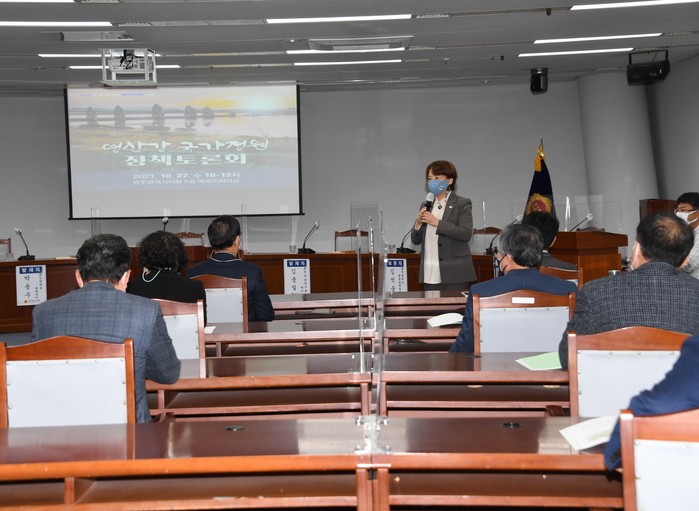 광주시의회에 따르면 광주시의회 그린뉴딜특위는 27일 오전 시의회 예결특위 회의실에서 영산강 국가정원 지정을 위한 정책토론회를 개최했다.