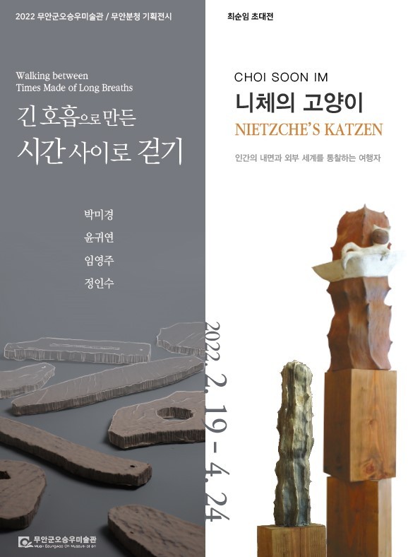 [세계로컬타임즈 박종현 기자] 무안군오승우미술관은 올해 첫 기획전으로 무안분청 기획전 ‘긴 호흡으로 만든 시간 사이로 걷기’와 최순임 작가 초대전 ‘니체의 고양이’를 오는 2월 19일부터 4월 24일까지 개최한다고 밝혔다.