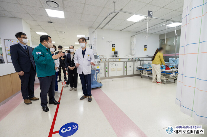[세계로컬타임즈 조주연 기자] 정헌율 전북 익산시장이 12일 원광대학교병원을 방문해 의료공백 위기 속에서 현장을 떠나지 않고 환자 곁을 지키고 있는 의료진을 격려하고 있다.