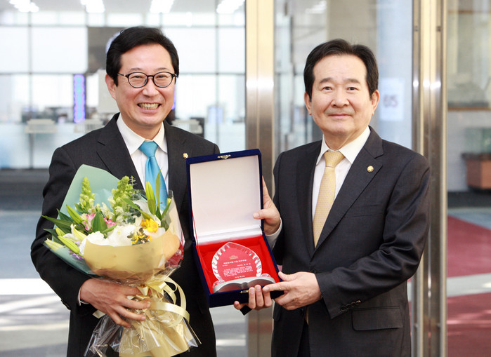 김한정 의원은 20일 국회도서관 2층 나비정원에서 열린 국회도서관 65주년 기념식에서정세균 국회의장으로부터 국회도서관 이용 최우수 의원상을 수상했다.