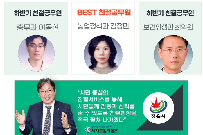 [세계로컬타임즈 조주연 기자] 전북 정읍시가 타의 모범이 된 3명의 친절 공무원을 선정했다.