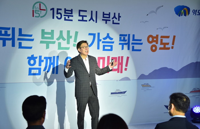 이어 “부산과 영도의 미래 발전을 위한 그 첫 번째 열쇠는 첨단해양신산업육성”이라며 “부산이 해양산업 특화도시가 되기 위한 그 기반은 영도의 부스트 벨트 조성에서 시작될 것이다. 그 속에서 양질의 새로운 일자리 창출, 직장과 주거지의 근접화로 이동을 최소화 하는 것으로 15분 도시의 핵심 가치가 녹아든 주거・일자리・문화가 융복합된 컴팩트 타운이 실현될 것”이라고 강조했다.