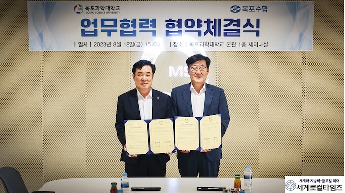 19일 목포수협에 따르면 김청룡 목포수협 조합장과 이호균 목포과학대 총장은 지난 18일 목포과학대에서 협약식을 맺었다.