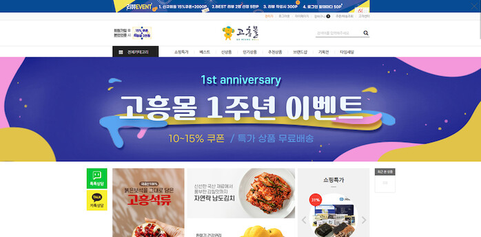 이번 기념이벤트는 고흥몰 홈페이지 행사 외에도 네이버스토어를 통해 햅쌀·골드키위·고흥 생굴·가리비 등 라이브방송 판매도 진행될 예정이다.