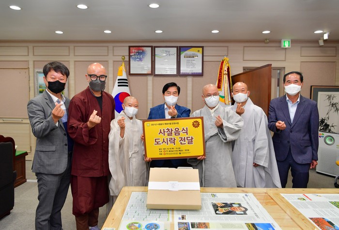 전남 장성군에 위치한 대한불교조계종 제18교구 본사 백양사(주지 무공스님)와 천진암(정관스님)은 10월 14~15일 이틀에 걸쳐 ‘함께 보듬는 위로의 사찰음식 도시락 전달’이란 이름으로 장성군청, 보건소, 소방서, 국립공원, 사랑의집, 누리타운, 사랑의 집에 사찰음식 도시락 620개를 전달했다.