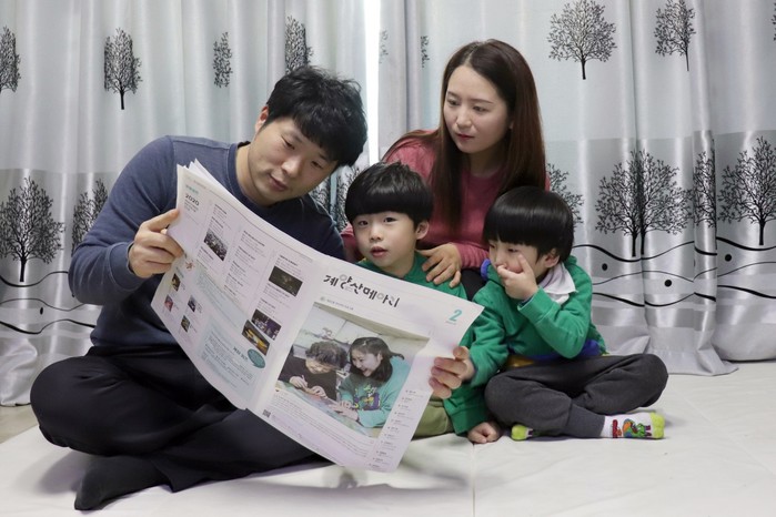 | ▲계양구민이 소식지를 보며 구정 및 이웃의 다양한 정보를 접하고 있다. (사진=계양구 제공) |