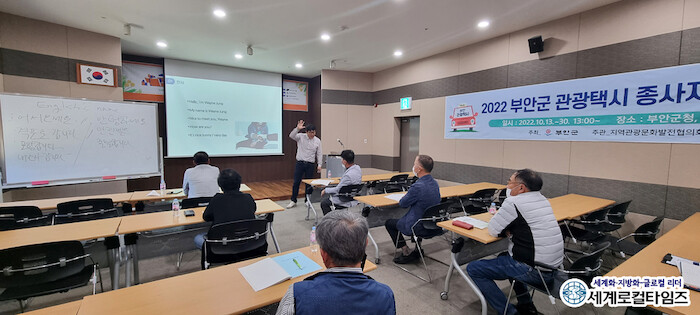 [세계로컬타임즈 조주연 기자] 전북 부안군이 “10월 한달동안 총 4회 16시간 과정으로 부안 관광택시 운전자 6명의 역량강화 교육을 실시했다”고 31일 밝혔다.