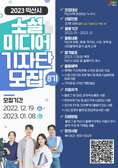 [세계로컬타임즈 조주연 기자] 전북 익산시가 2023년에 활동할 제8기 소셜미디어기자단을 모집한다.