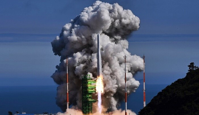 | ▲ 한국형 발사체 누리호(KSLV-Ⅱ)가 지난달 21일 전남 고흥군 나로우주센터 발사대에서 화염을 내뿜으며 우주로 날아오르고 있다.(사진=뉴시스) |