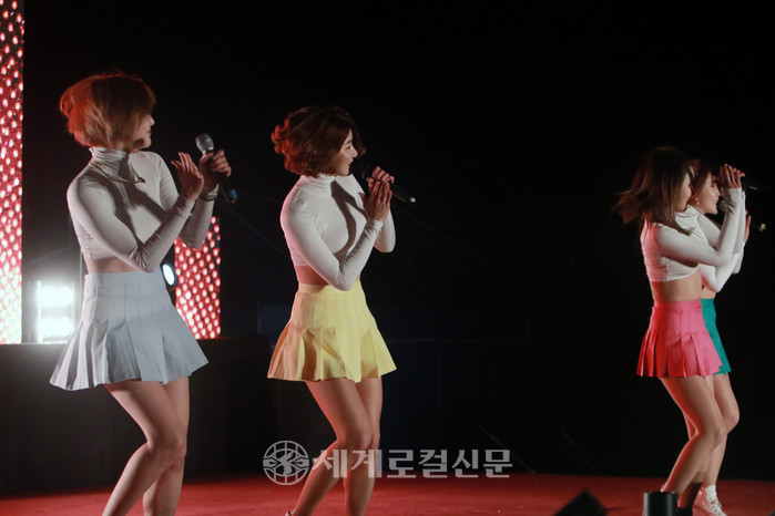 [세계로컬신문 조주연 기자] 7일 오후 전북 익산 배산체육공원 특설무대에서 펼쳐진 제99회 전국체전, 제38회 전국장애인체전 성공기원 시민 한마음 콘서트에 트로트 걸그룹 레이디티(Lady T)가 출연해 흥겨운 무대를 꾸며주고 있다.