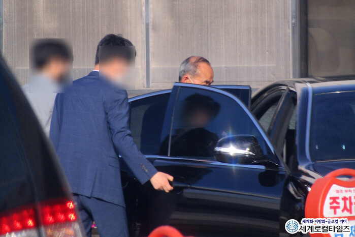 | ▲박준배 김제시장이 관용차에 올라타고 있다(세계로컬타임즈 DB) |