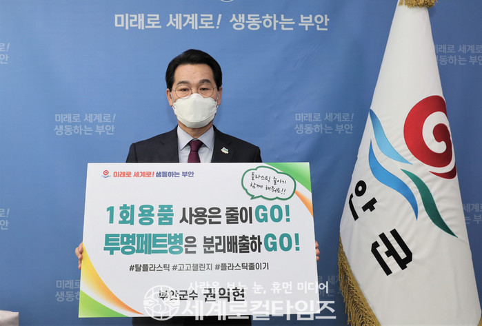 | ▲권익현 부안군수가 탈 플라스틱 캠페인에 동참하고 있다.(사진=부안군 제공) |